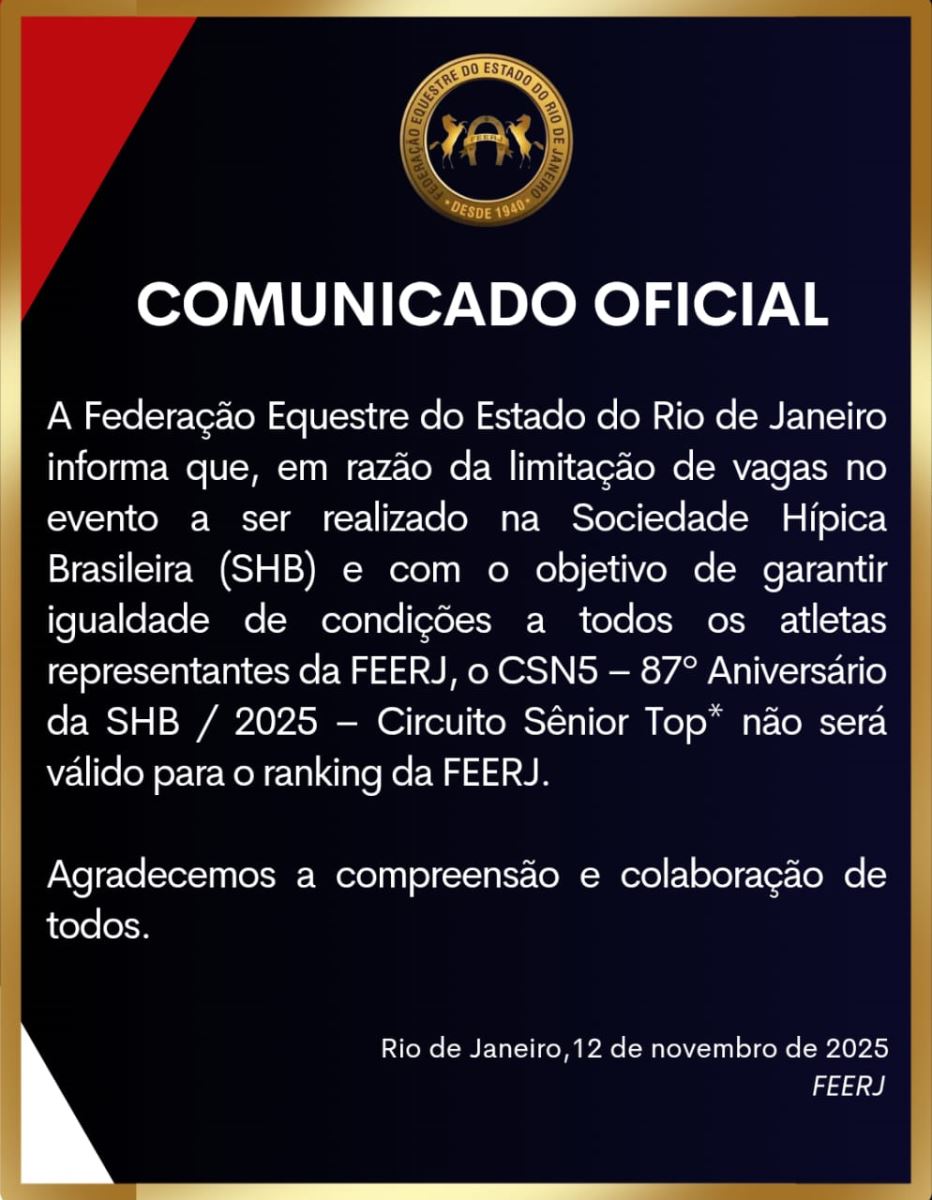 ALTERAÇÃO NO CALENDÁRIO FEERJ 2025